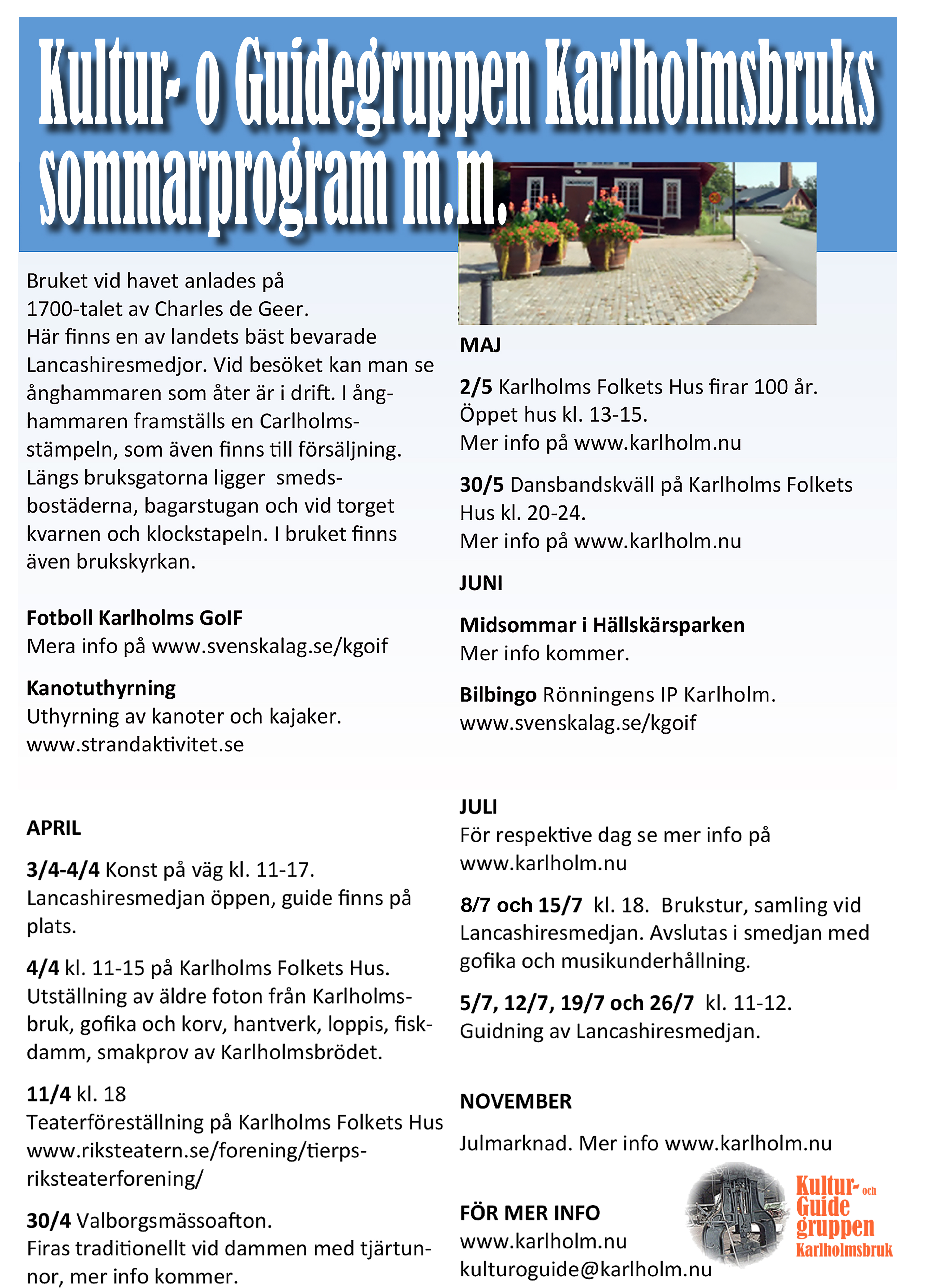 Mer info om Kultur- o Guidegruppen: www.karlholm.nu/kulturguidegruppen